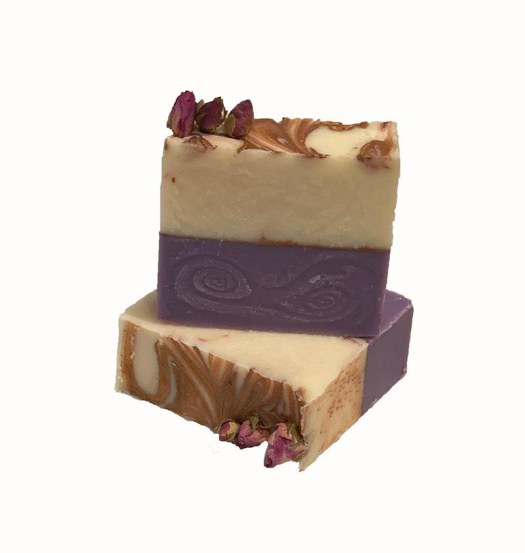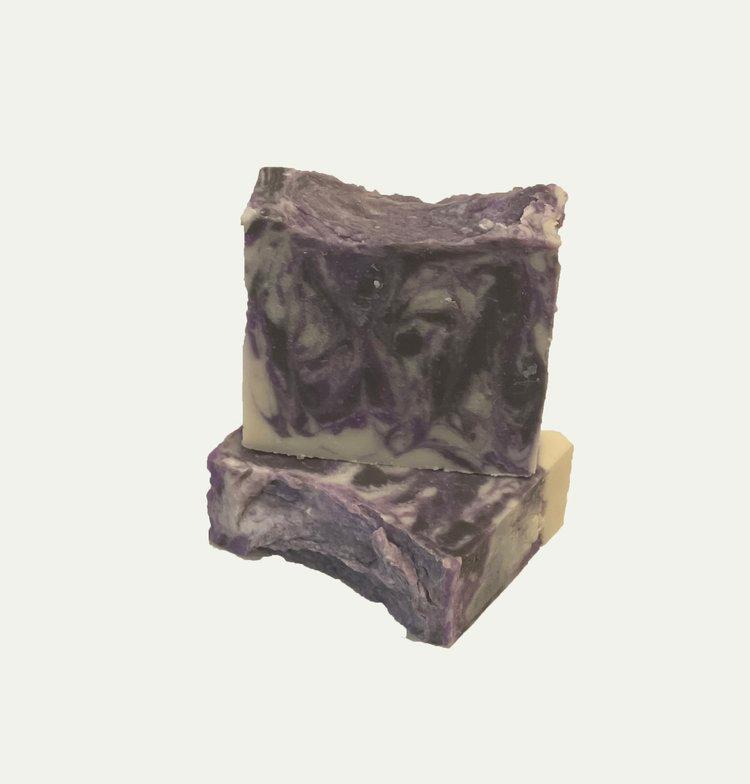 This beautiful soap is lightly scented with floral notes of lavender and sweet orange, giving this soap a very calming odor.